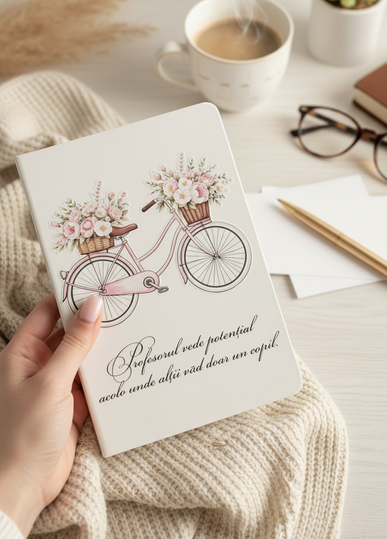 Fiecare piesă poate fi personalizată cu text, nume sau mesaj, fiind perfectă pentru educatoare, profesori sau persoane dragi.