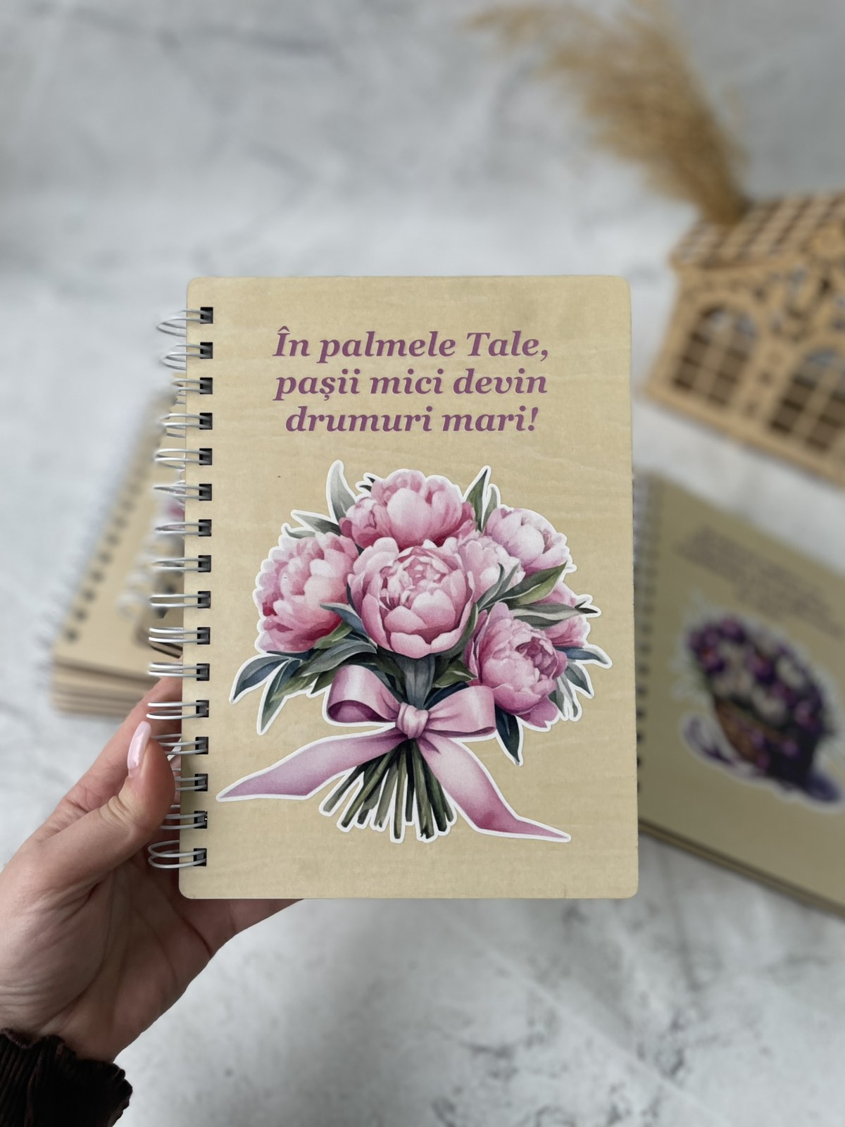Carnet din lemn cu bujori