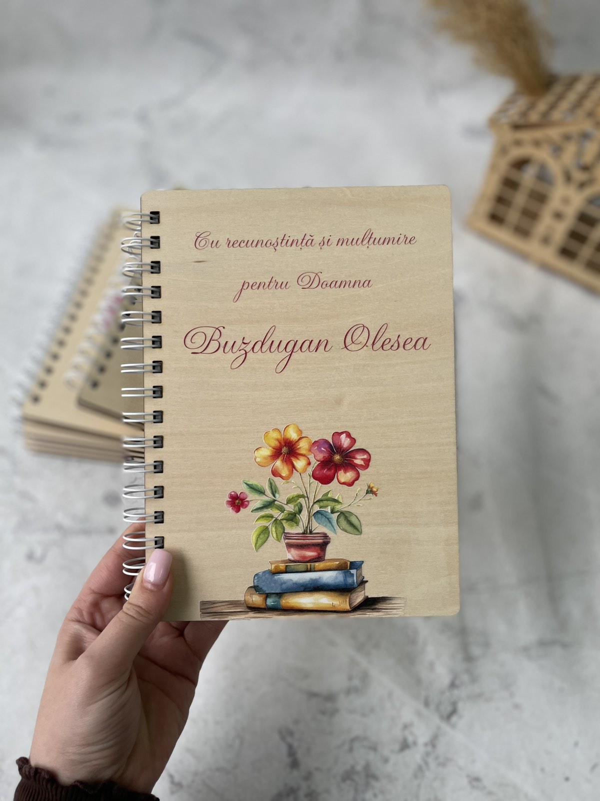 Fiecare piesă poate fi personalizată cu text, nume sau mesaj, fiind perfectă pentru educatoare, profesori sau persoane dragi.