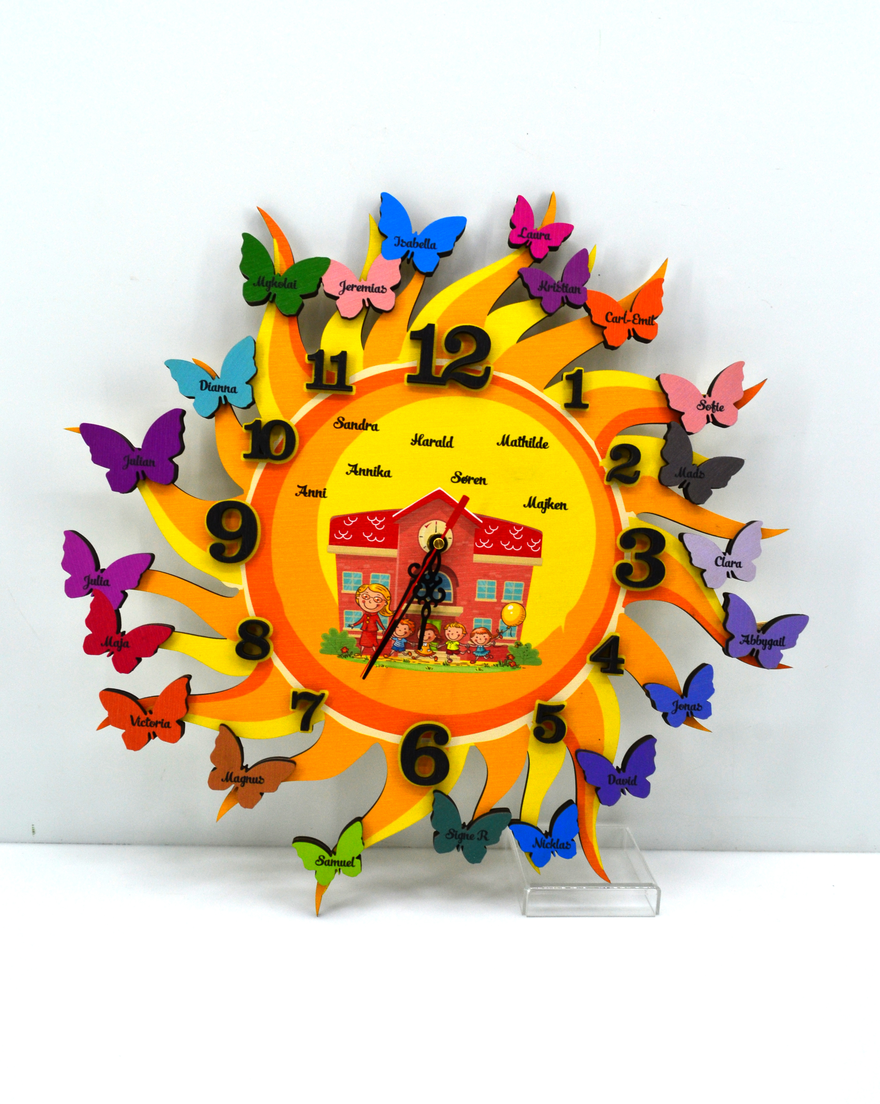 Fiecare ceas este cu mesaje de apreciere, nume sau simboluri educative, devenind un cadou unic pentru sfârșit de an școlar, festivități sau „Ziua Profesorului”.