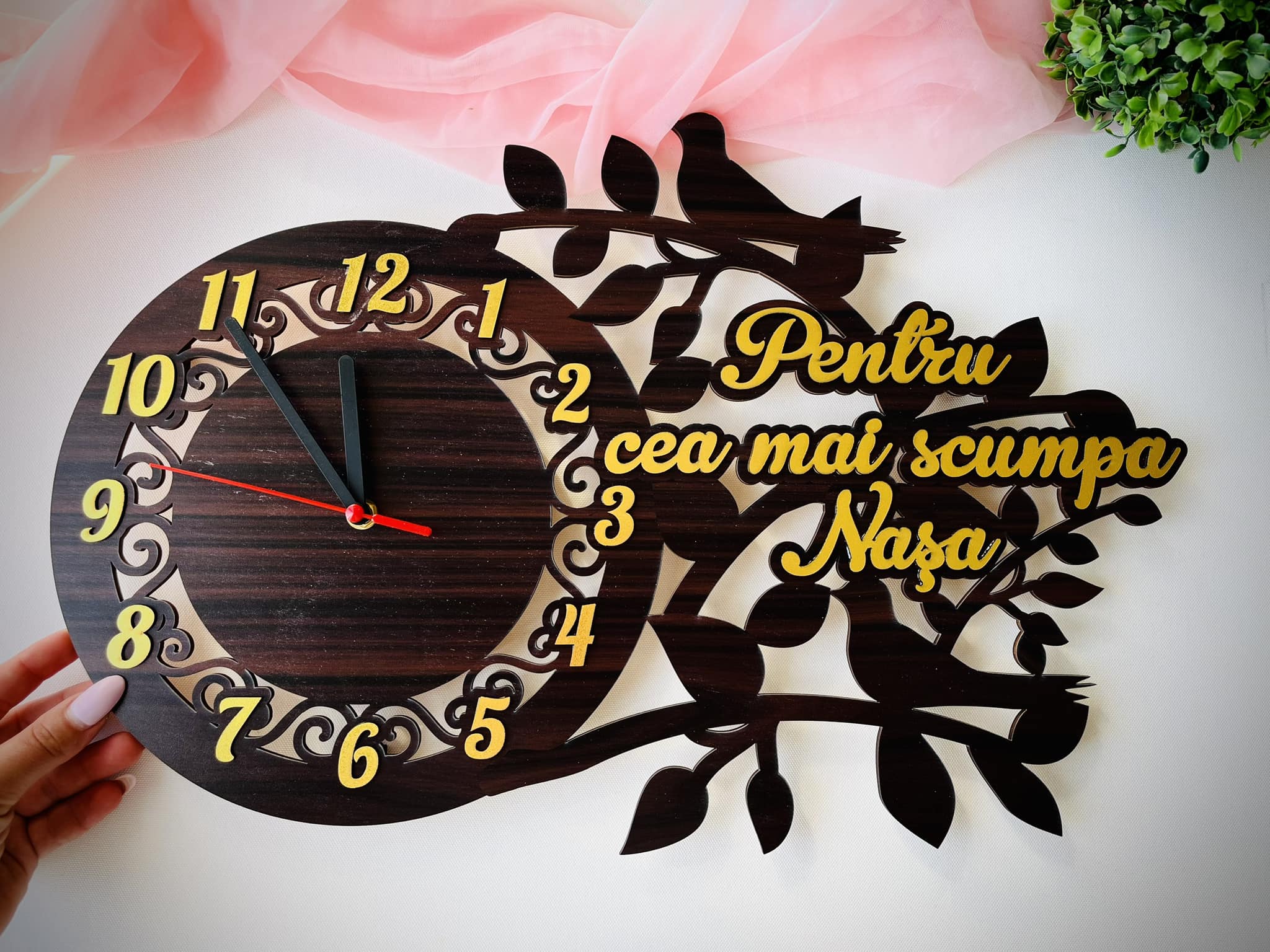 La TG Decor găsești ceasuri personalizate din lemn, create special pentru nași, părinți și bunici – oameni dragi care merită un „mulțumesc” spus din inimă. Fiecare ceas este gravat cu mesaje emoționante, nume sau dedicații, devenind un cadou unic, plin de semnificație.