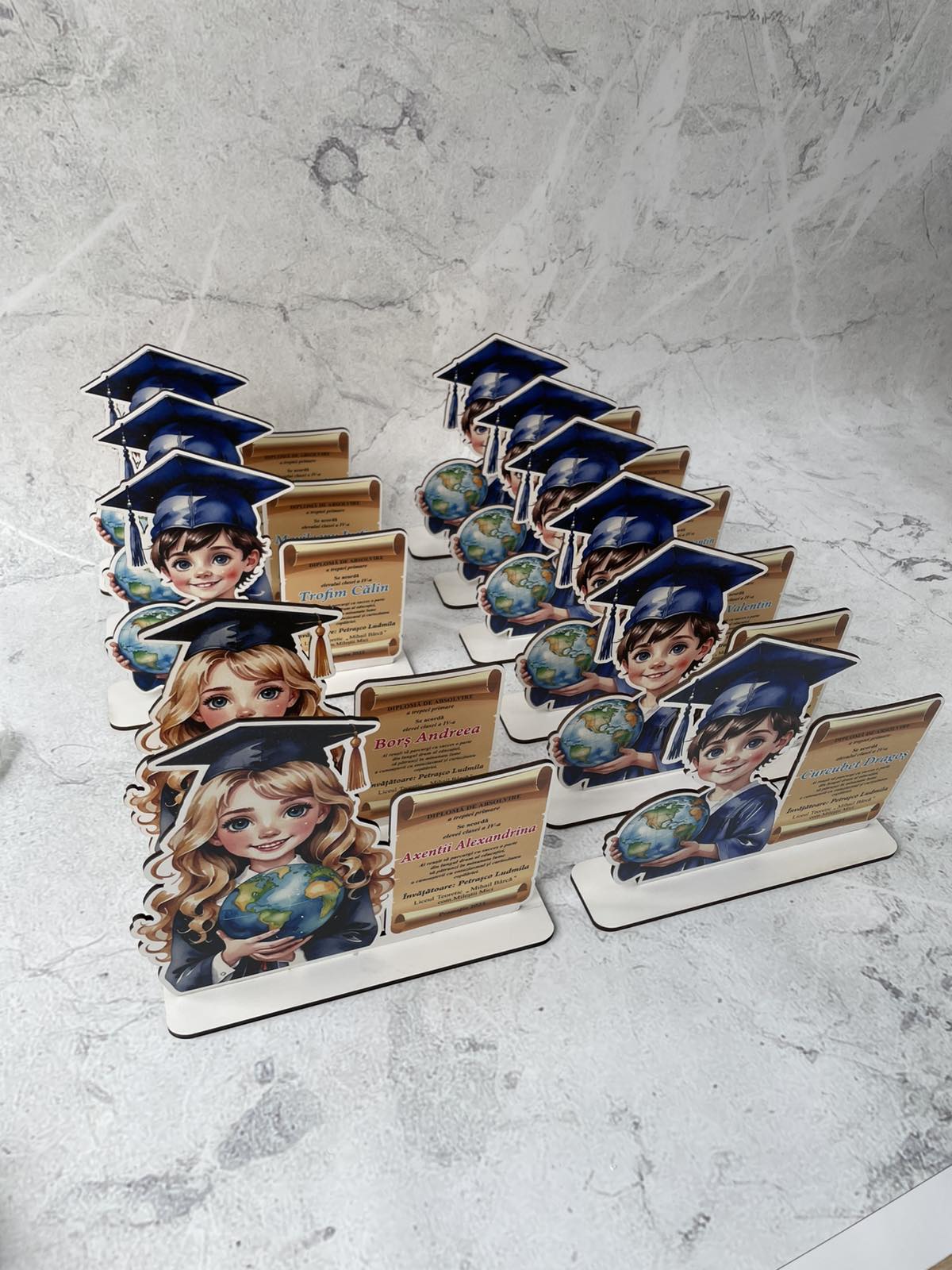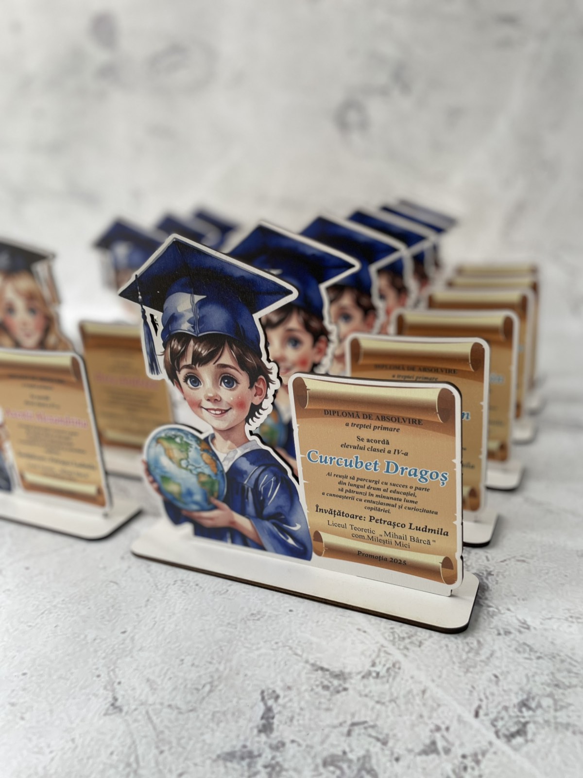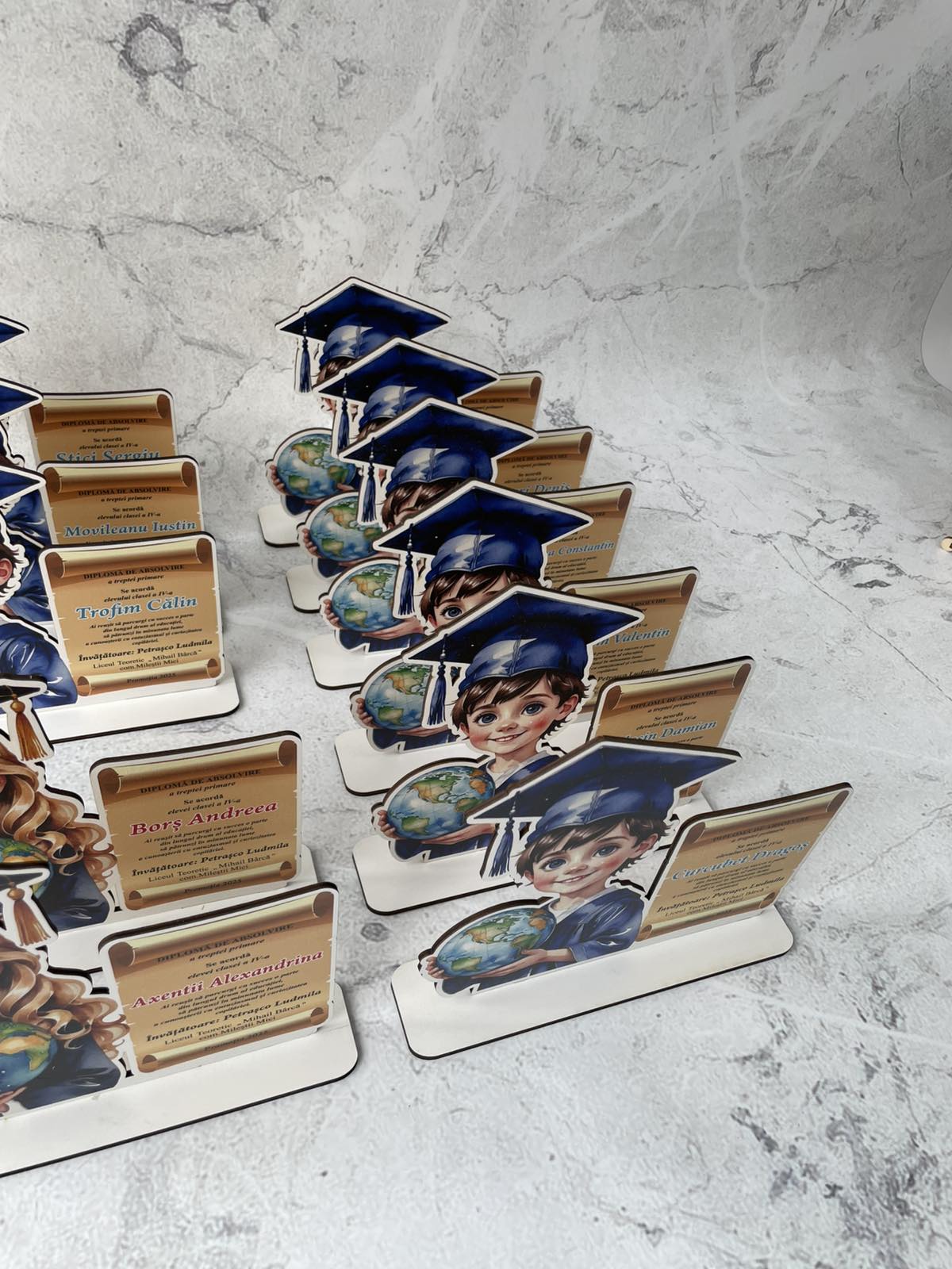 Finalul unei etape importante merită să fie celebrat cu o diplomă personalizată, un trofeu elegant sau o plachetă gravată! Oferim diplome pentru absolvenți realizate din acril, faneră și PET, cu design unic și gravură laser de precizie. Fie că este vorba despre o diplomă pentru grădiniță, școală, liceu sau facultate, avem soluția perfectă pentru fiecare ocazie!