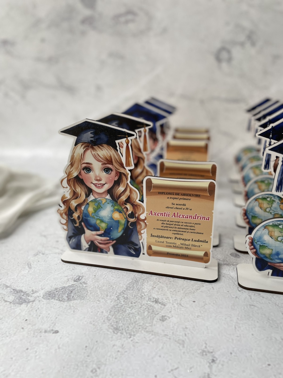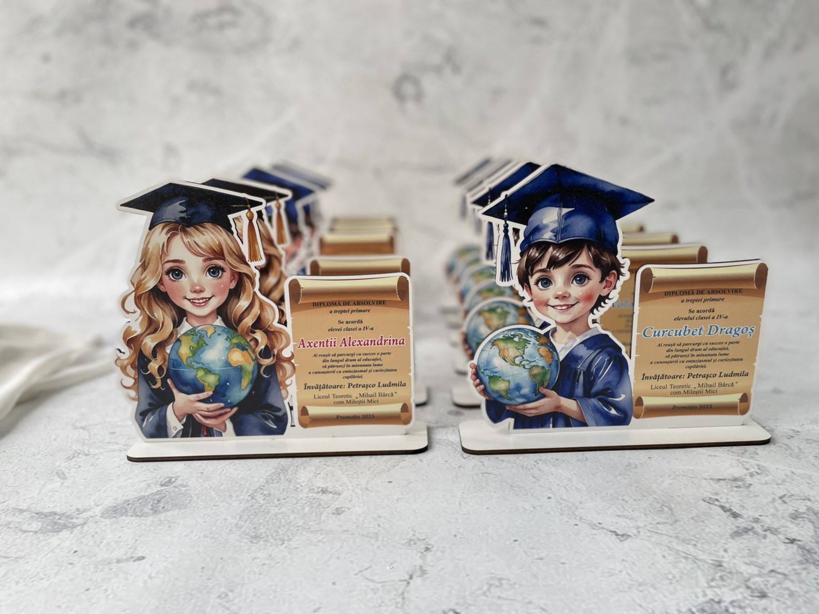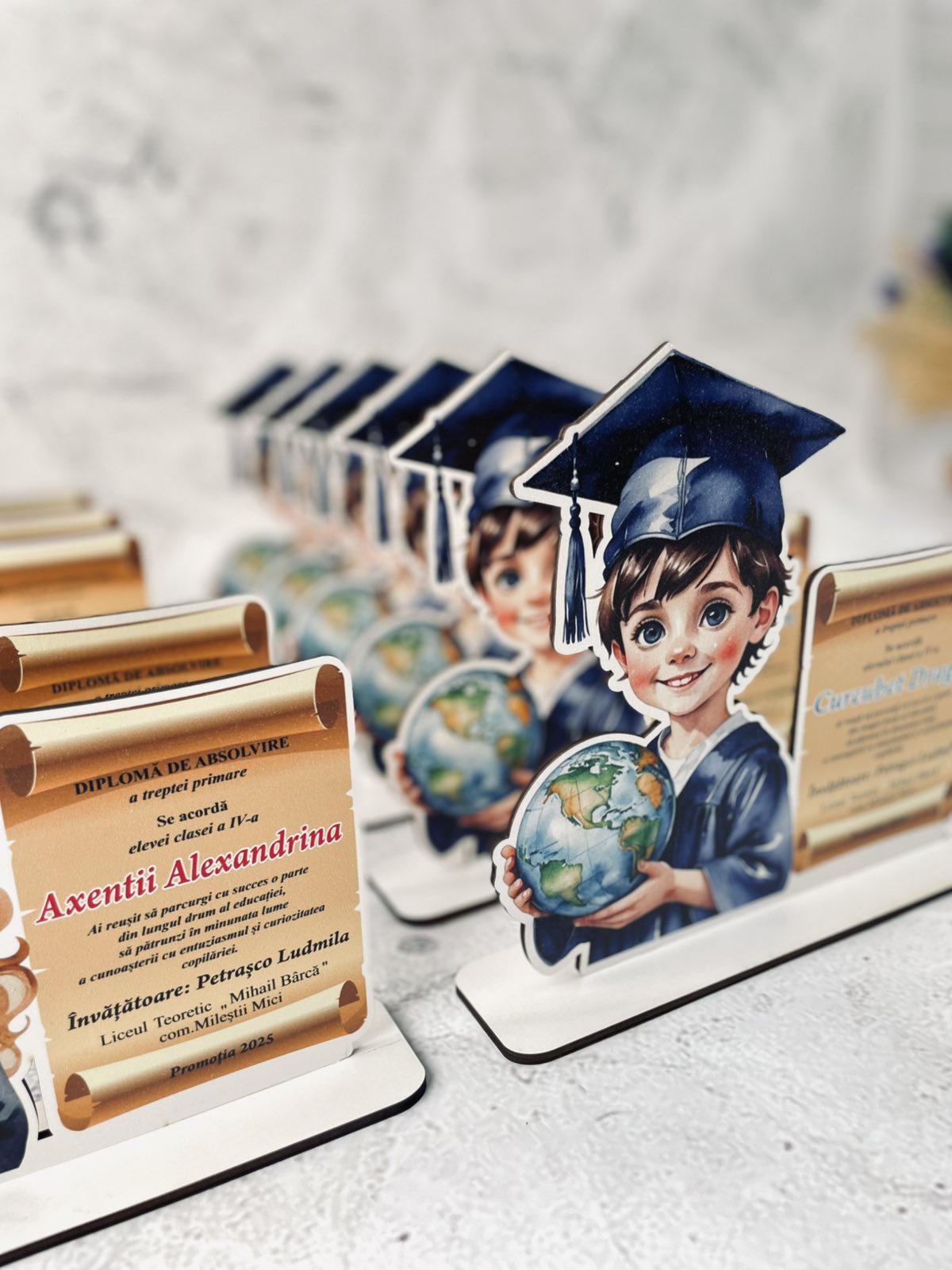 Finalul unei etape importante merită să fie celebrat cu o diplomă personalizată, un trofeu elegant sau o plachetă gravată! Oferim diplome pentru absolvenți realizate din acril, faneră și PET, cu design unic și gravură laser de precizie. Fie că este vorba despre o diplomă pentru grădiniță, școală, liceu sau facultate, avem soluția perfectă pentru fiecare ocazie!
