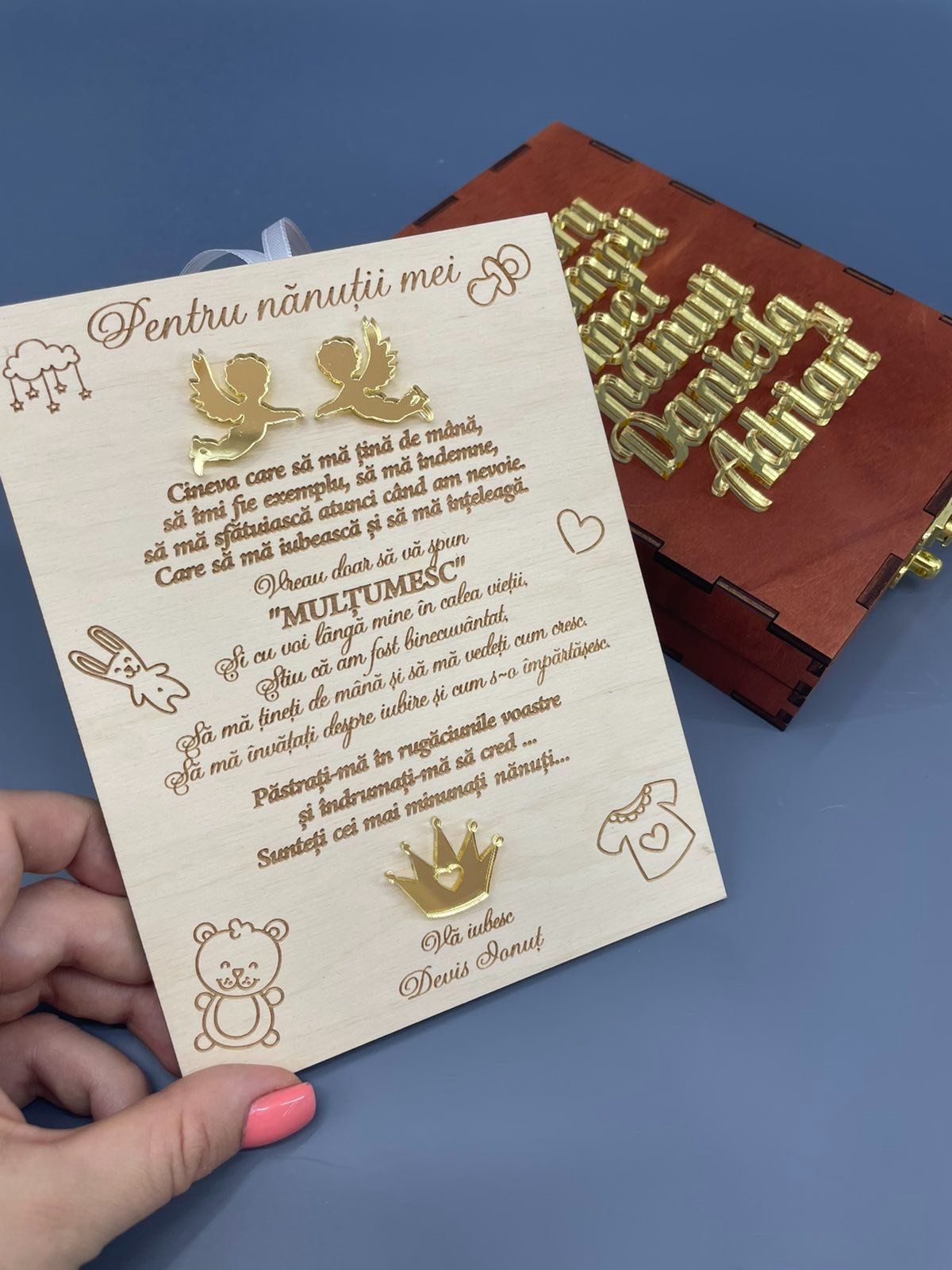 Realizate sub formă de puzzle sau plăcuțe decorative cu mesaje, nume și detalii florale, aceste creații combină eleganța lemnului cu originalitatea.