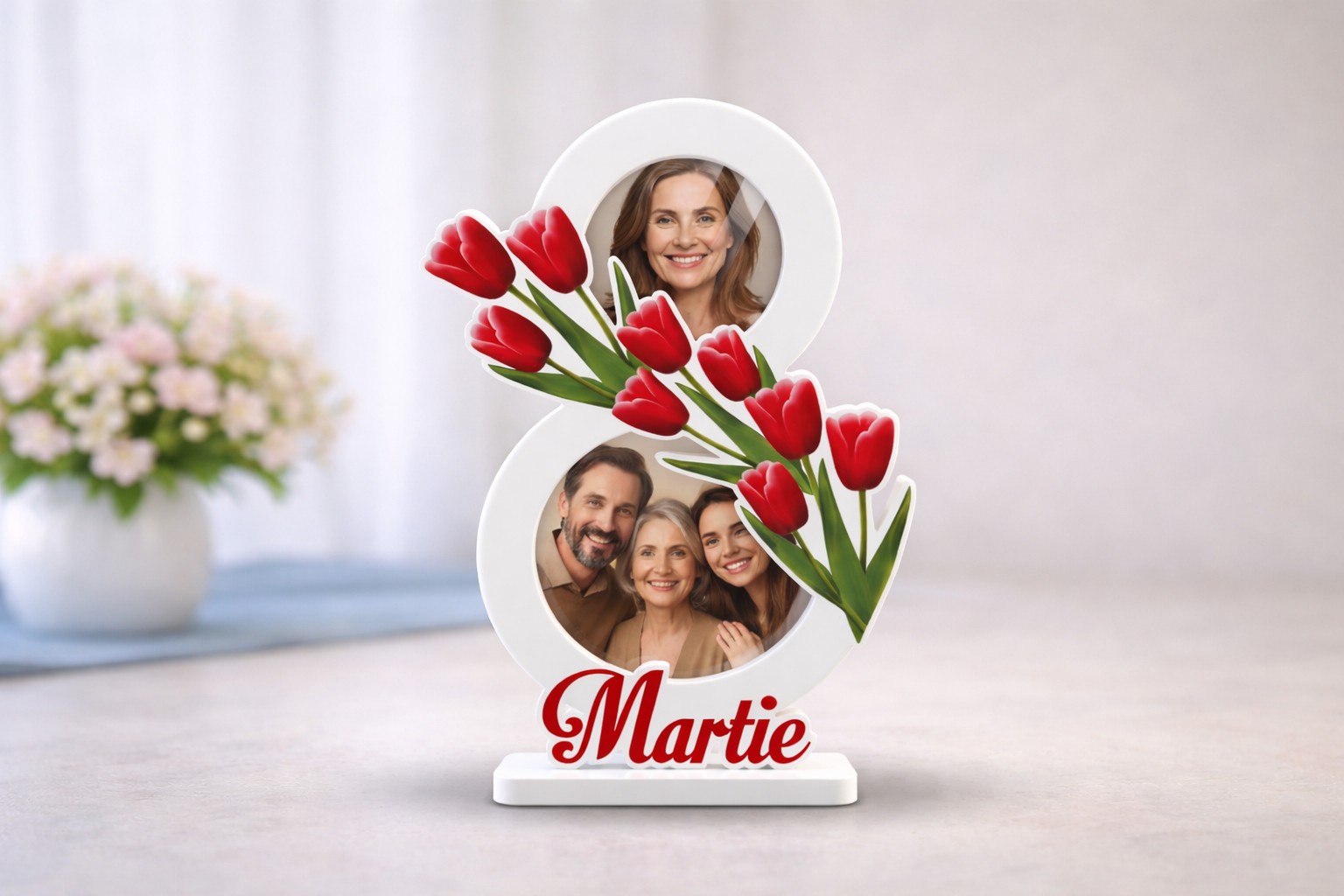 - Rama in forma de 8 cu lalele rosii