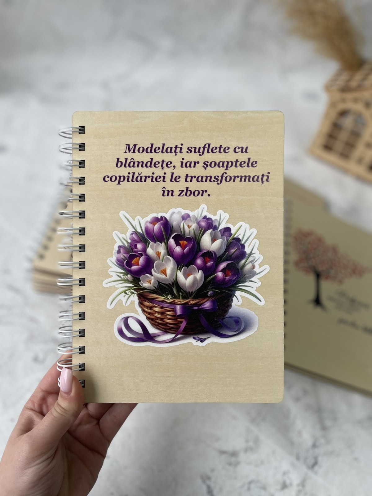 Деревянный блокнот с корзинкой цветов